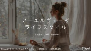 インド伝統医学「アーユルヴェーダ」の知恵を通じて、あなた本来の体質=ドーシャ(ヴァータ・ピッタ・カパ)を理解するセミナーです。